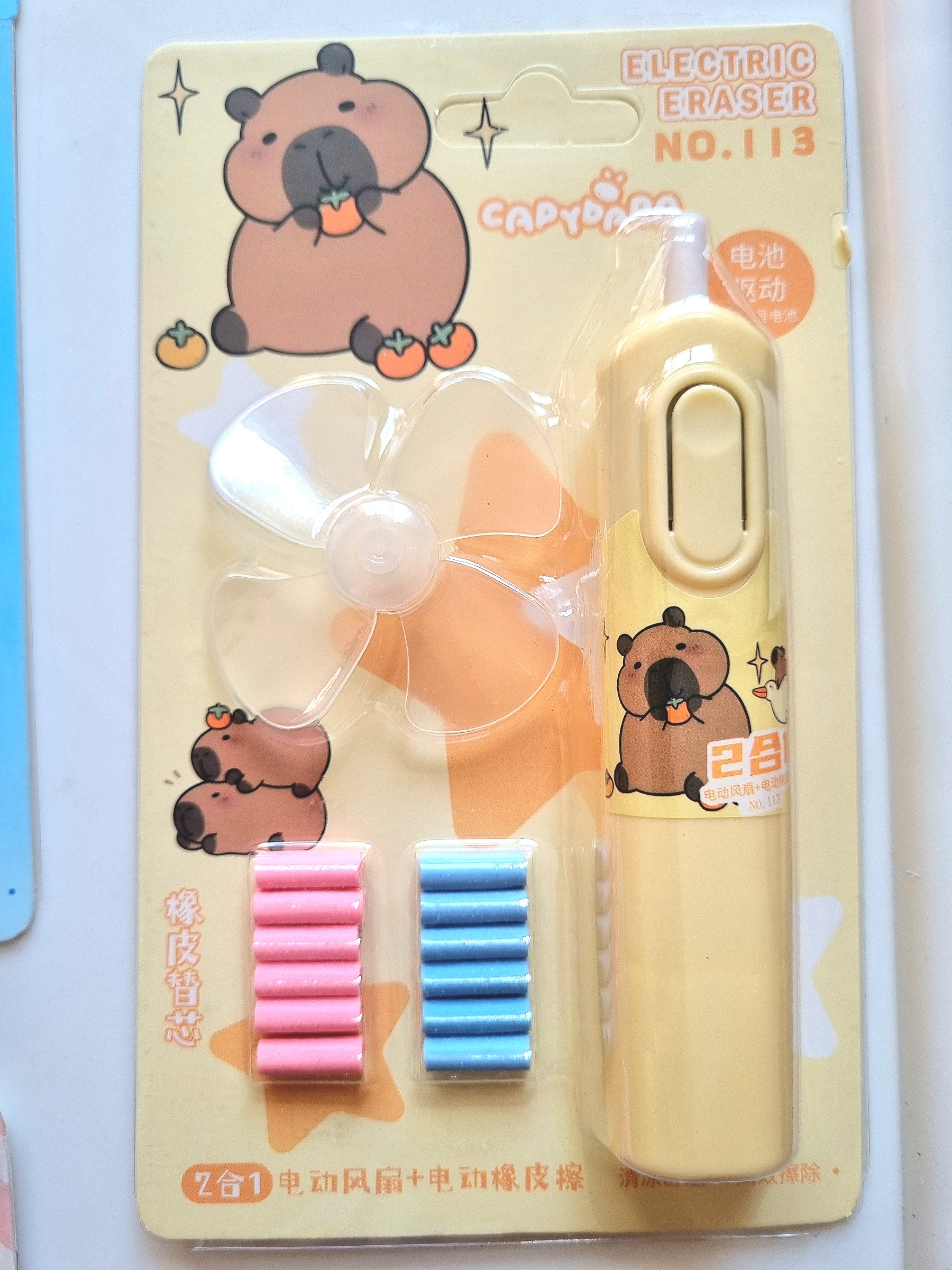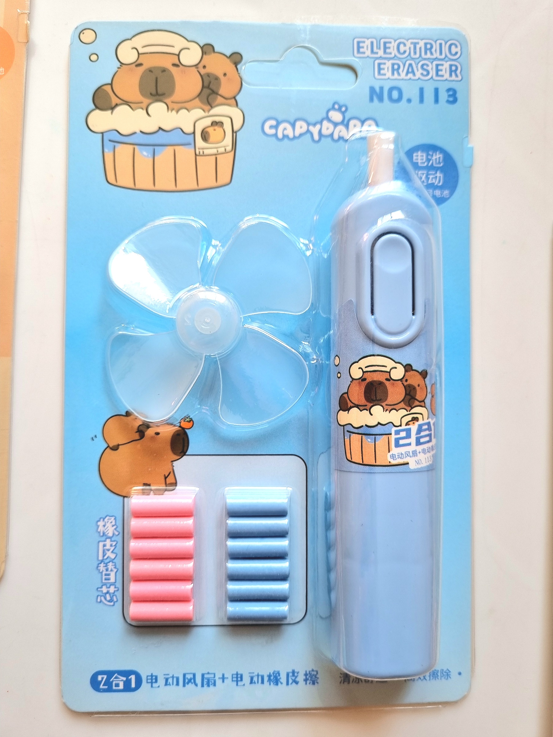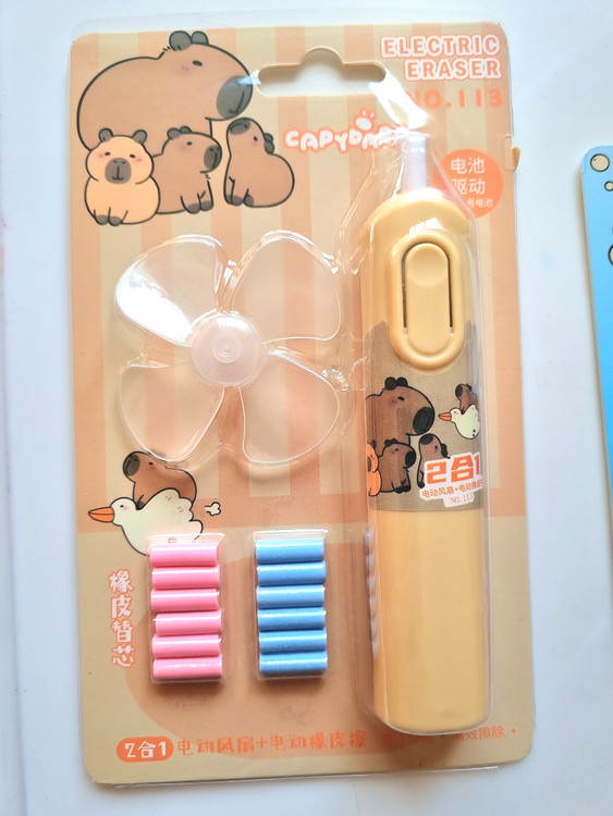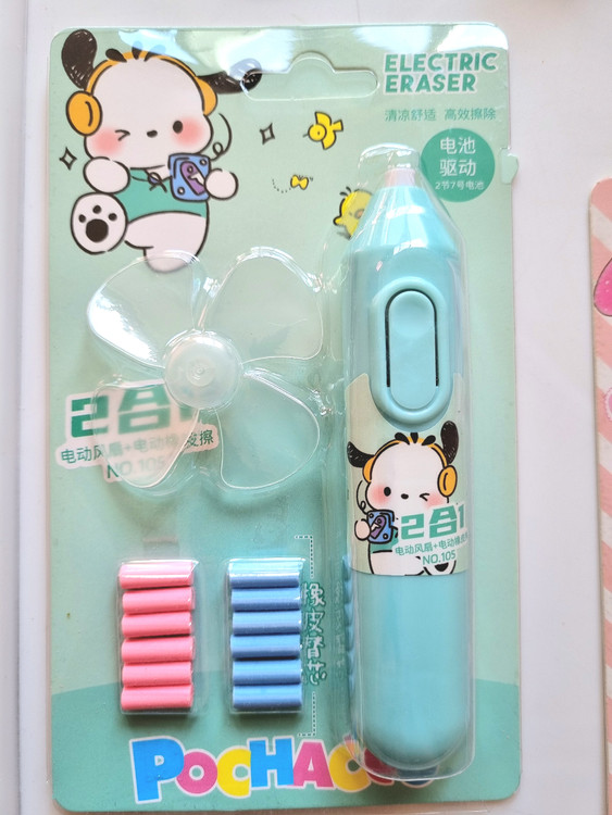 پاک کن برقی به همراه یدک پاک کن اضافه و یک سَریِ پنکه که به صورت پنکه هم قابل استفاده است.